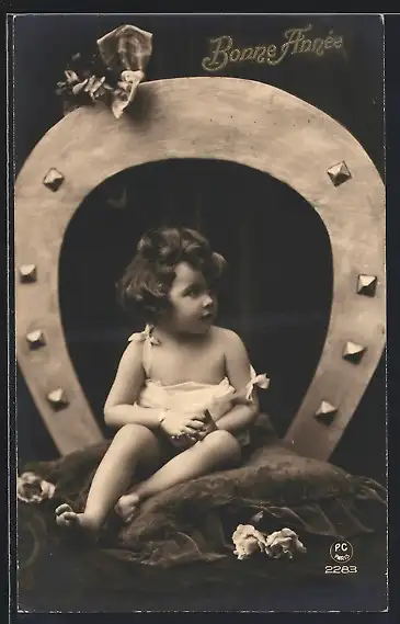 Foto-AK P. C. Paris: Junges Mädchen unter einem Hufeisen