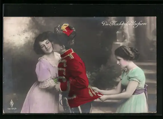 Foto-AK PFB: Soldat in Uniform küsst eine Frau