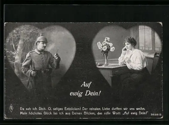 Foto-AK PFB: Soldat mit Pickelhaube und Frau am Schreibtisch