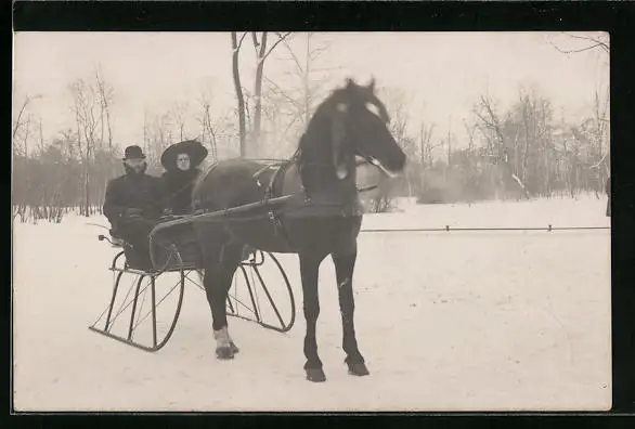 Foto-AK Pferdeschlitten im tiefsten Winter