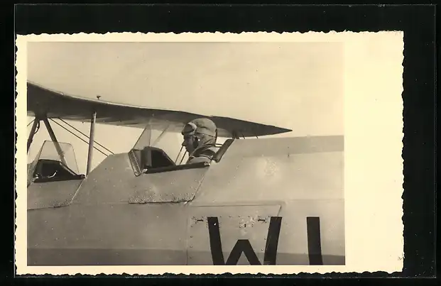 Foto-AK Pilot im Cockpit eines Flugzeug