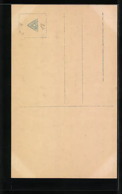 Personenbezogene Daten auf der Rückseite der Karte wurden durch blauen Textmarker unkenntlich gemacht. Die blauen Stellen sind auf die Vorderseite durchgeweicht und wirken sich negativ auf das Postkartenfoto aus