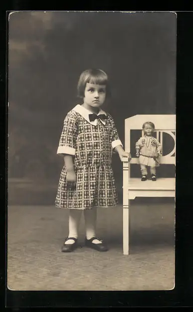 Foto-AK Portrait eines 3-jährigen Mädchens mit ihrer Puppe