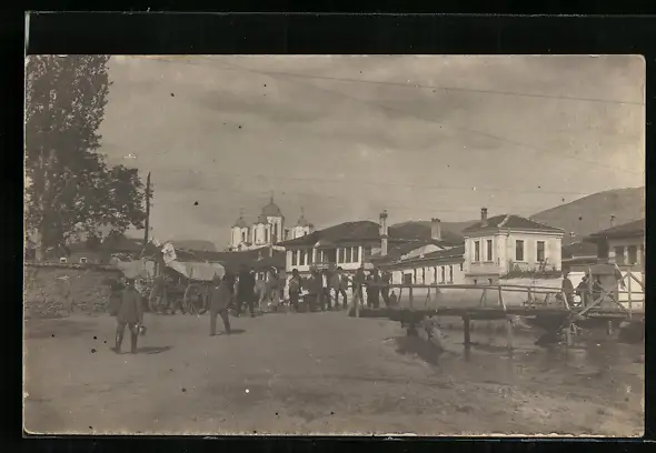 Foto-AK Prilep, Brücke über den Fluss, Soldaten in Uniform