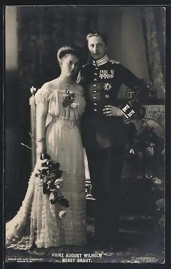 Foto-AK Prinz August Wilhelm von Preussen nebst Braut