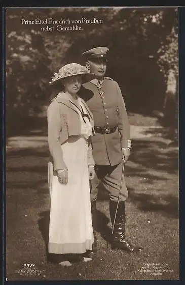 Foto-AK Prinz Eitel Friedrich von Preussen in Uniform mit seiner Gemahlin