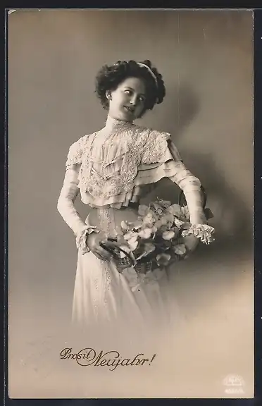 Foto-AK R & K / L Nr.4037/6: Hübsche junge Frau mit einen Korb