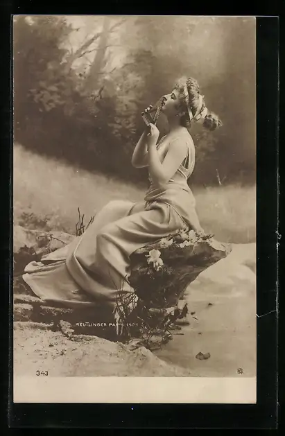 Foto-AK RPH Nr. 343: Junge Frau spielt Panflöte
