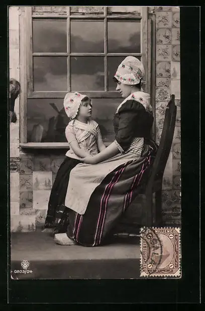 Foto-AK RPH SBW: Mutter und Tochter in Trachten und Holzschuhen