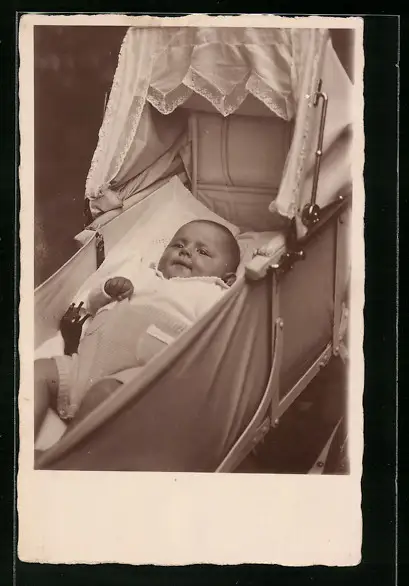 Foto-AK Säugling in einem Kinderwagen