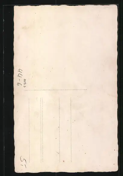 Personenbezogene Daten auf der Rückseite der Karte wurden durch blauen Textmarker unkenntlich gemacht. Die blauen Stellen sind auf die Vorderseite durchgeweicht und wirken sich negativ auf das Postkartenfoto aus