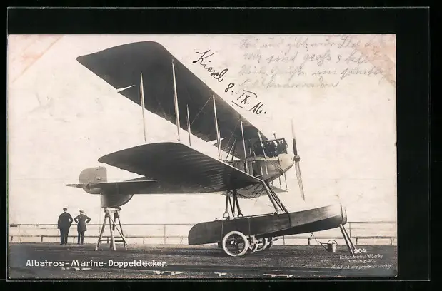 Foto-AK Sanke Nr. 904: Wasserflugzeug, Albatros-Marine-Doppeldecker