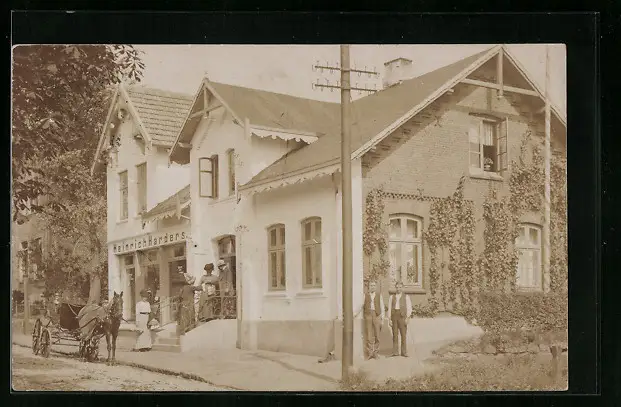 Foto-AK Schenefeld, Trikotagengeschäft Heinrich Harders 1914