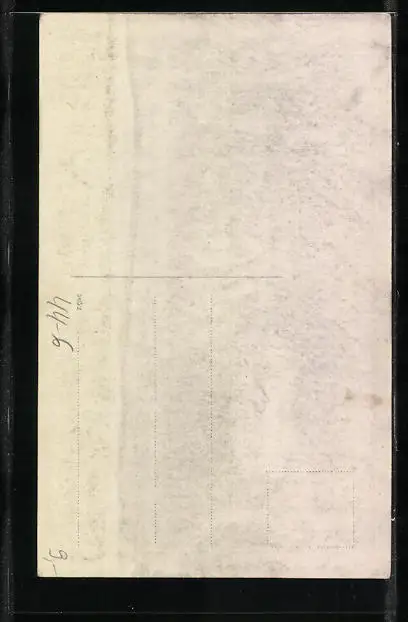 Personenbezogene Daten auf der Rückseite der Karte wurden durch blauen Textmarker unkenntlich gemacht. Die blauen Stellen sind auf die Vorderseite durchgeweicht und wirken sich negativ auf das Postkartenfoto aus