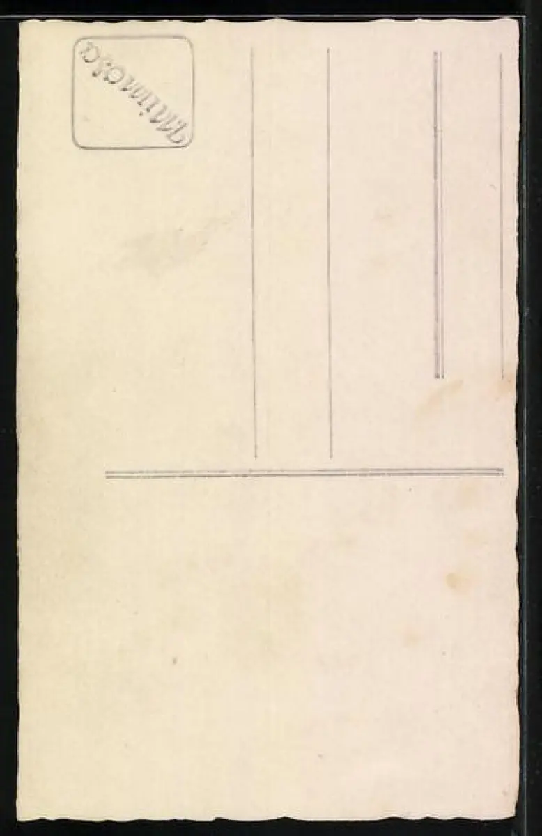 Personenbezogene Daten auf der Rückseite der Karte wurden durch blauen Textmarker unkenntlich gemacht. Die blauen Stellen sind auf die Vorderseite durchgeweicht und wirken sich negativ auf das Postkartenfoto aus