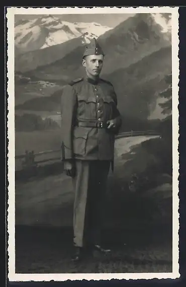 Foto-AK Schweizer Soldat in Uniform mit Käppi