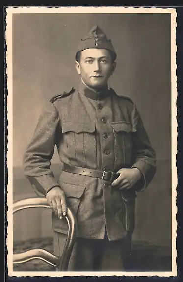 Foto-AK Schweizer Soldat in Uniform mit Käppi