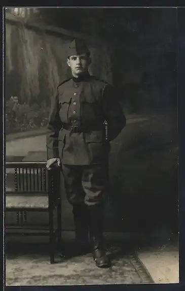 Foto-AK Schweizer Soldat in Uniform mit Käppi