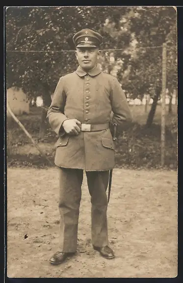 Foto-AK Soldat in Feldgrau Uniform mit Bajonett