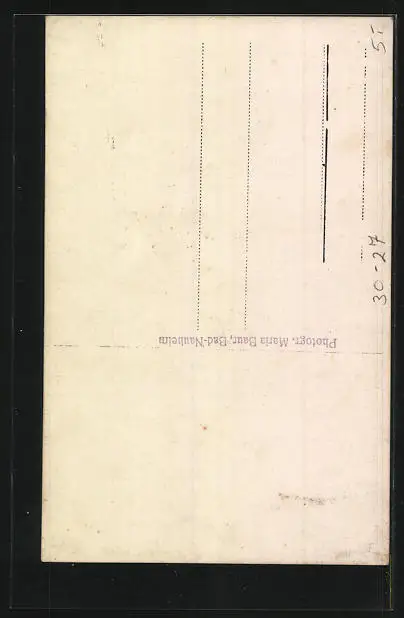 Personenbezogene Daten auf der Rückseite der Karte wurden durch blauen Textmarker unkenntlich gemacht. Die blauen Stellen sind auf die Vorderseite durchgeweicht und wirken sich negativ auf das Postkartenfoto aus