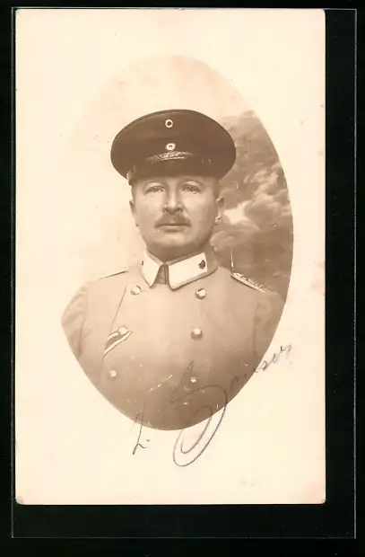 Foto-AK Soldat in Uniform mit Schirmmütze, Uniformfoto