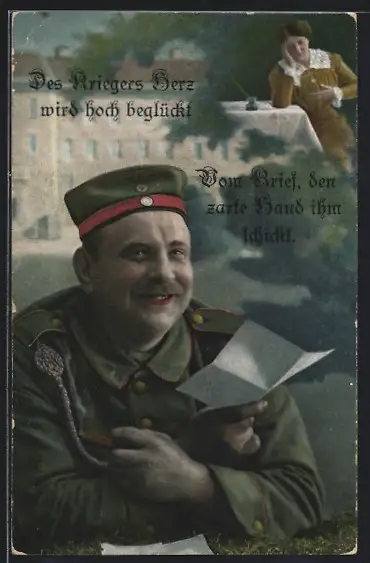 Foto-AK Soldat in Uniform mit Zigarre sieht den Geist seiner Frau