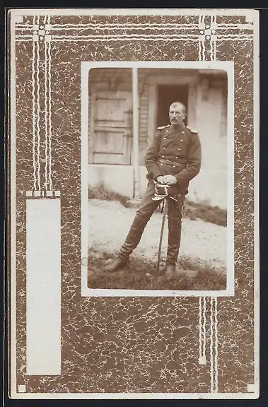 Foto-AK Soldat in Uniform mit einem Degen, Passepartout