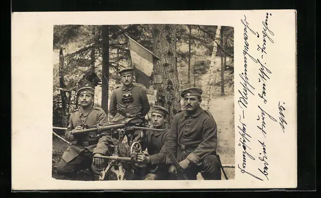 Foto-AK Soldaten in Uniform der Infanterie mit MG