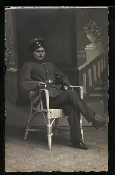 Foto-AK Soldatin in Uniform mit Zigarette