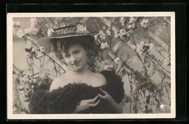 Foto-AK Stebbing: Cavell, Dame mit Hut und Federboa