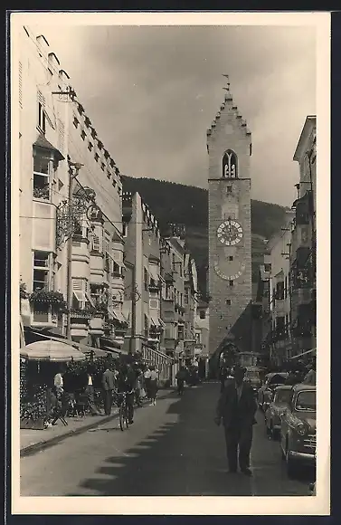 Foto-AK Sterzing, Strassenpartie mit Torturm, 1956