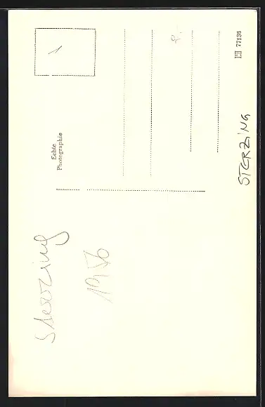 Personenbezogene Daten auf der Rückseite der Karte wurden durch blauen Textmarker unkenntlich gemacht. Die blauen Stellen sind auf die Vorderseite durchgeweicht und wirken sich negativ auf das Postkartenfoto aus