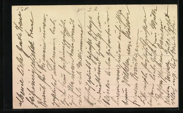 Personenbezogene Daten auf der Rückseite der Karte wurden durch blauen Textmarker unkenntlich gemacht. Die blauen Stellen sind auf die Vorderseite durchgeweicht und wirken sich negativ auf das Postkartenfoto aus