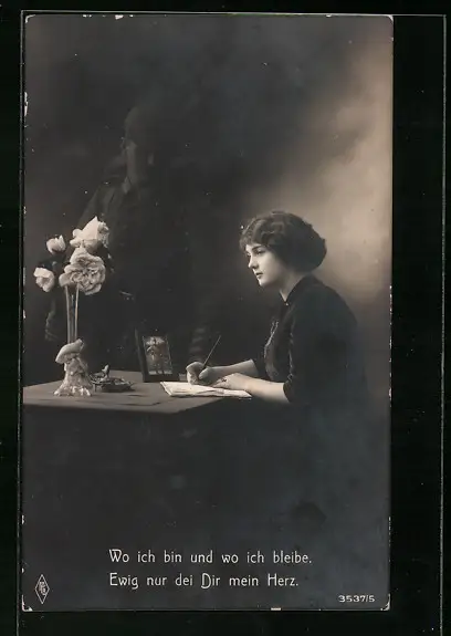 Foto-AK Trauernder Witwe erscheint der Geist ihres gefallenen Gatten