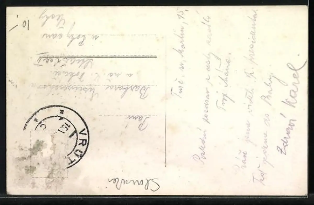 alte Ansichtskarte, gelaufen, Briefmarke entfernt, rückseitig Oberflächenschaden, guter Zustand