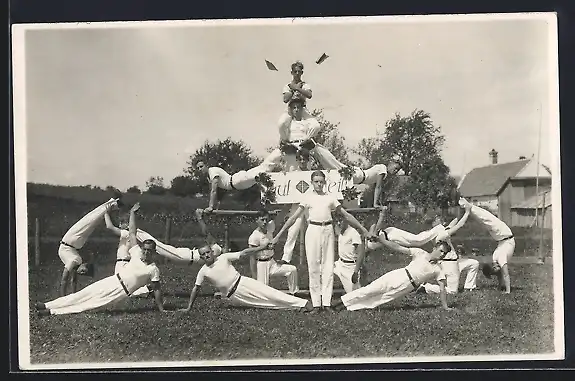 Foto-AK Turner posieren in Uniform, Pyramide