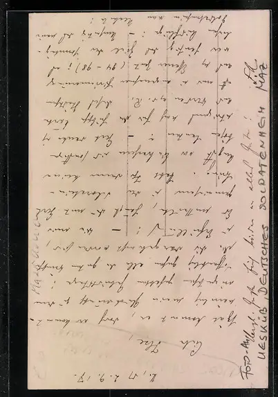Personenbezogene Daten auf der Rückseite der Karte wurden durch blauen Textmarker unkenntlich gemacht. Die blauen Stellen sind auf die Vorderseite durchgeweicht und wirken sich negativ auf das Postkartenfoto aus