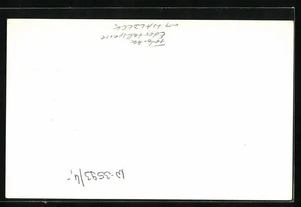 Personenbezogene Daten auf der Rückseite der Karte wurden durch blauen Textmarker unkenntlich gemacht. Die blauen Stellen sind auf die Vorderseite durchgeweicht und wirken sich negativ auf das Postkartenfoto aus