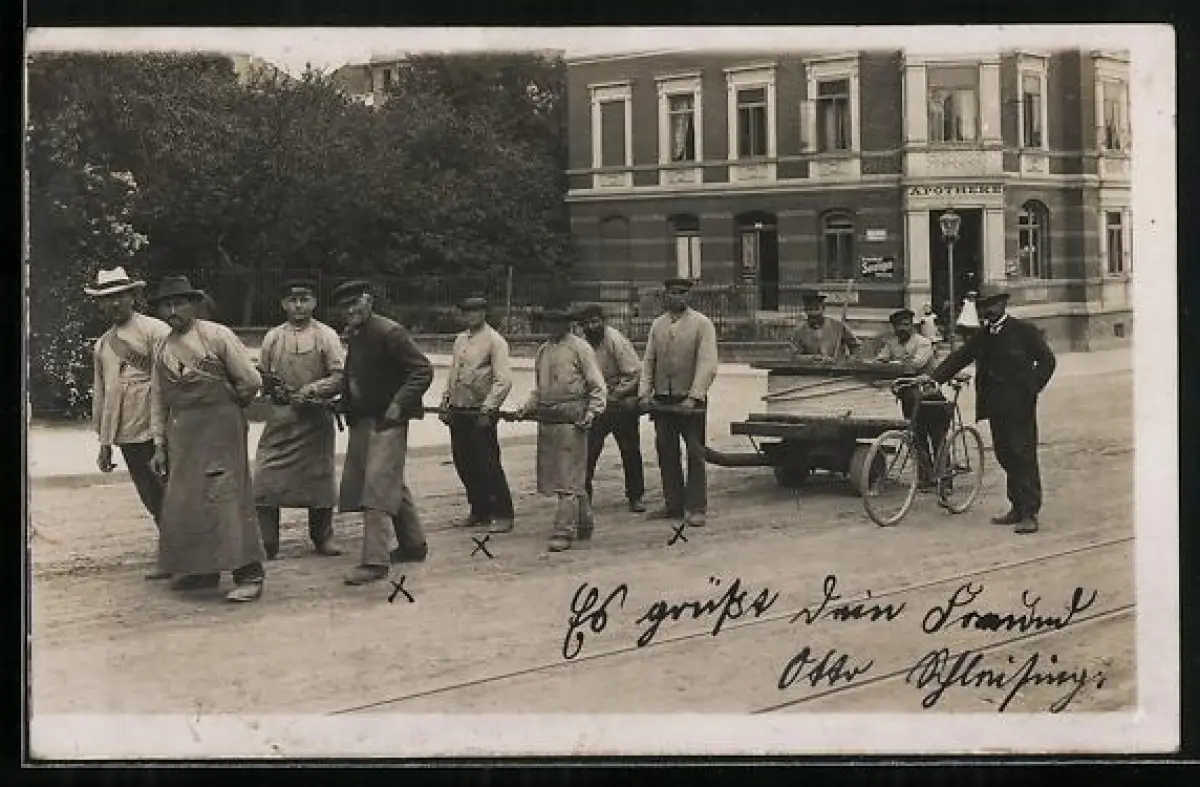 Foto-AK Weimar / Thür., Am Strasseneck Brennerstrasse 2, Arbeiter, Apotheke