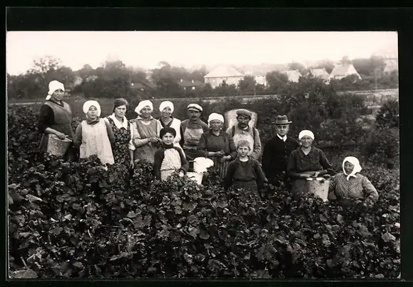 Foto-AK Weinpflücker und Herr im Anzug auf Weinfeld