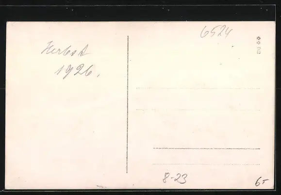 Personenbezogene Daten auf der Rückseite der Karte wurden durch blauen Textmarker unkenntlich gemacht. Die blauen Stellen sind auf die Vorderseite durchgeweicht und wirken sich negativ auf das Postkartenfoto aus