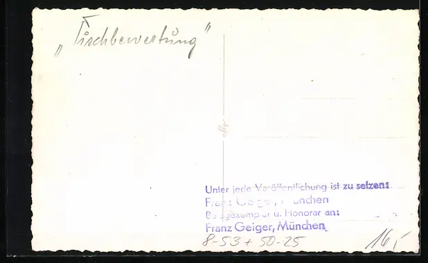 Personenbezogene Daten auf der Rückseite der Karte wurden durch blauen Textmarker unkenntlich gemacht. Die blauen Stellen sind auf die Vorderseite durchgeweicht und wirken sich negativ auf das Postkartenfoto aus
