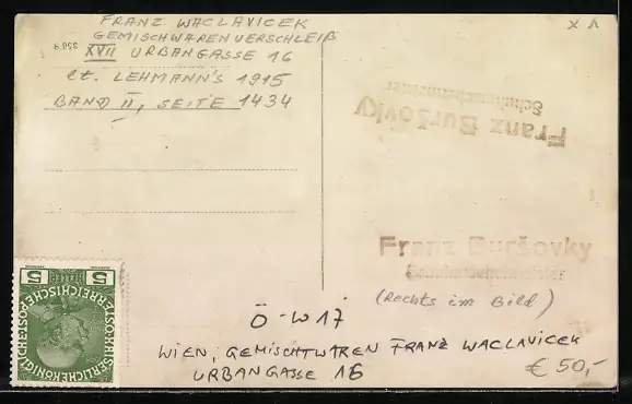 Foto-AK Wien, Gemischtwaren Franz Waclavicek, Urbangasse 16