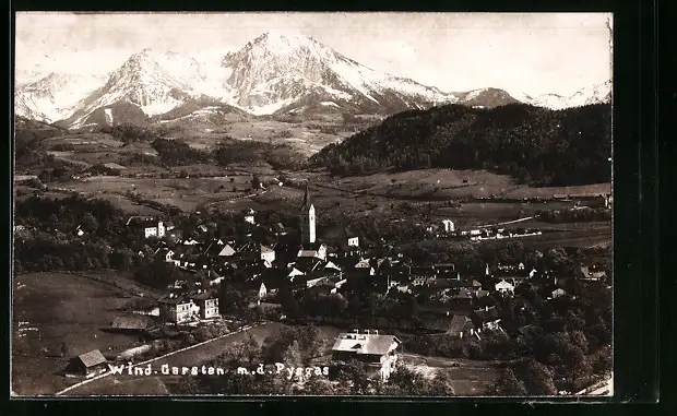 Foto-AK Wind. Garsten, Teilansicht mit Kirche u. d. Pyhrgas