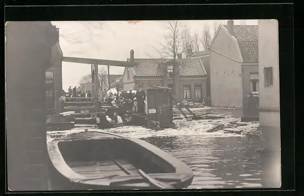 Foto-AK Zaandam, Hochwasser, Rettung eingeschlossener per Ruderboot