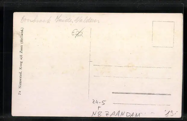 Personenbezogene Daten auf der Rückseite der Karte wurden durch blauen Textmarker unkenntlich gemacht. Die blauen Stellen sind auf die Vorderseite durchgeweicht und wirken sich negativ auf das Postkartenfoto aus