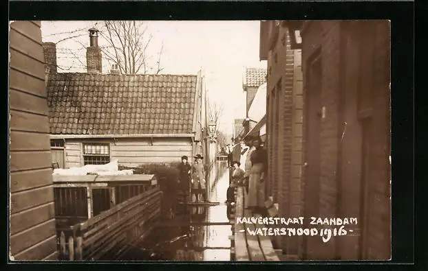 Foto-AK Zaandam, Kalverstraat, Hochwasser 1916