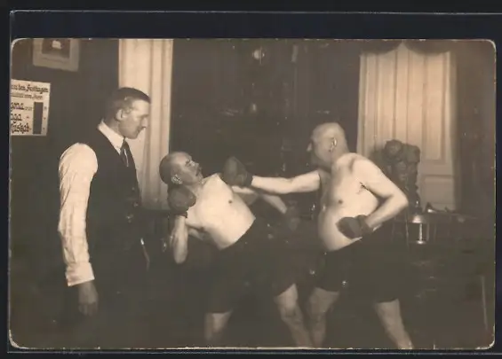 Foto-AK Zwei Boxer beim Training mit Trainer