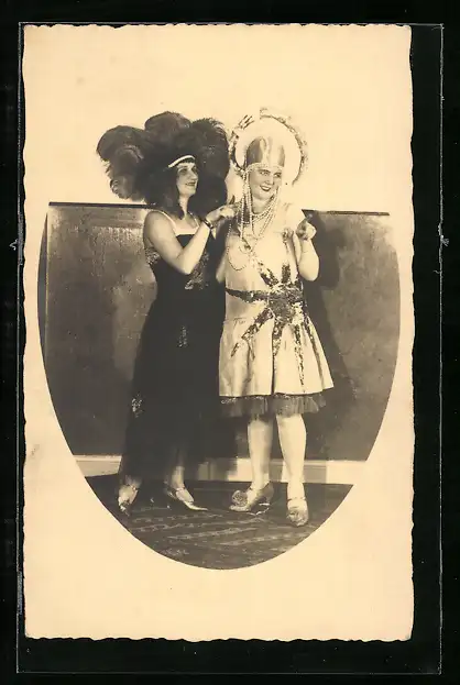 Foto-AK Zwei Damen in Faschings-Kostümen