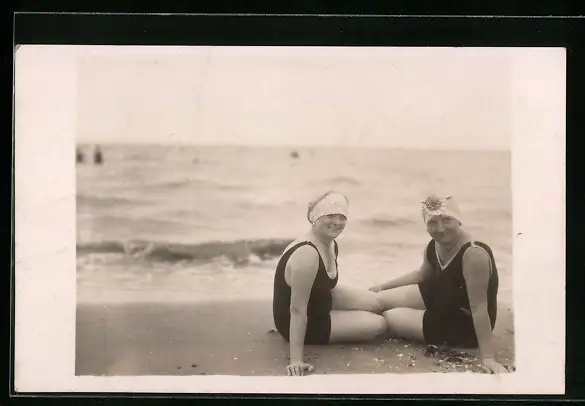 Foto-AK Zwei Frauen in Badeanzügen am Strand